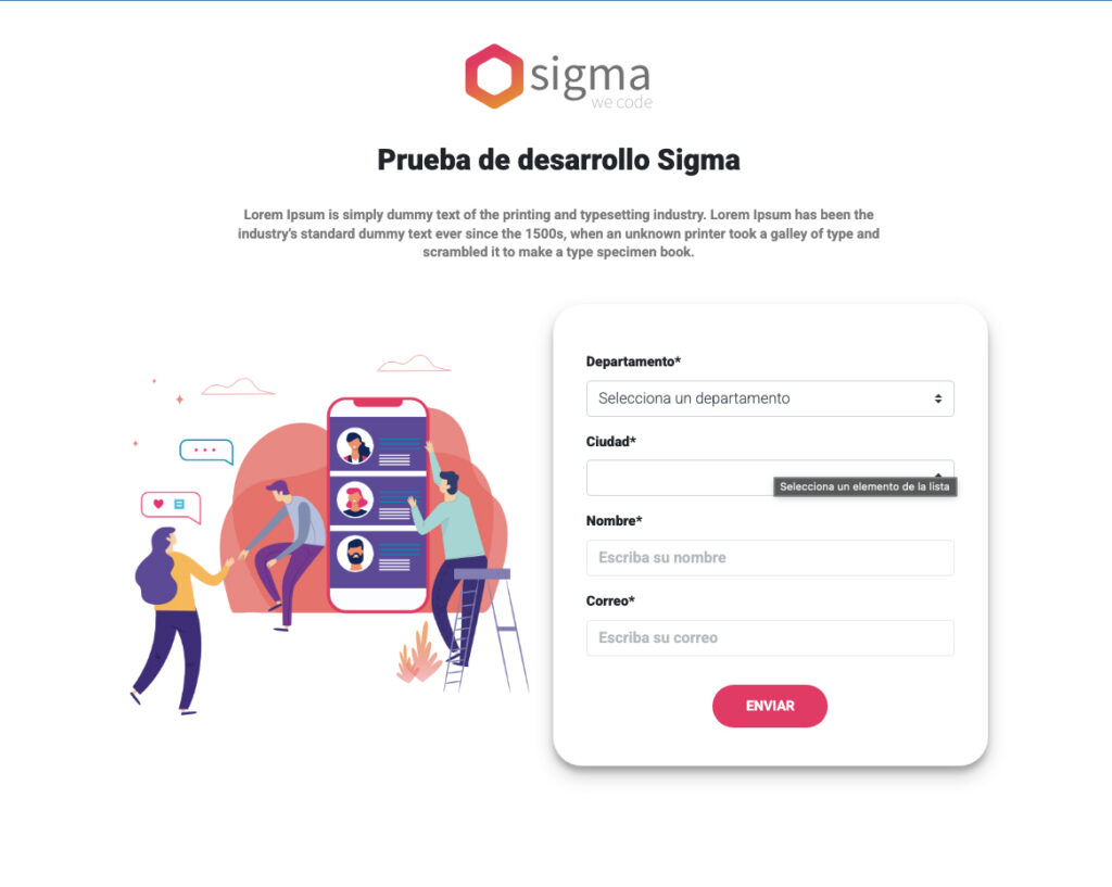 The following project aims to develop a section in HTML and CSS with respondive design.