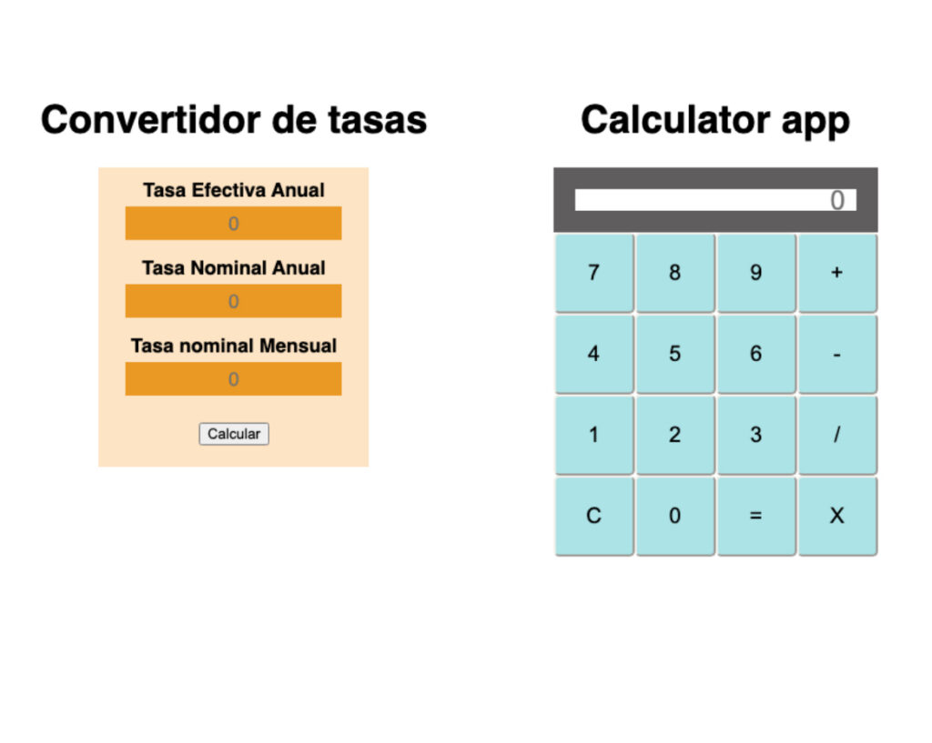 This project is done using JavaScript, html5 and css to convert the annual effective rate to annual or monthly nominal rate or from nominal to effective, and to simulate the functions of a calculator with the basic functions.